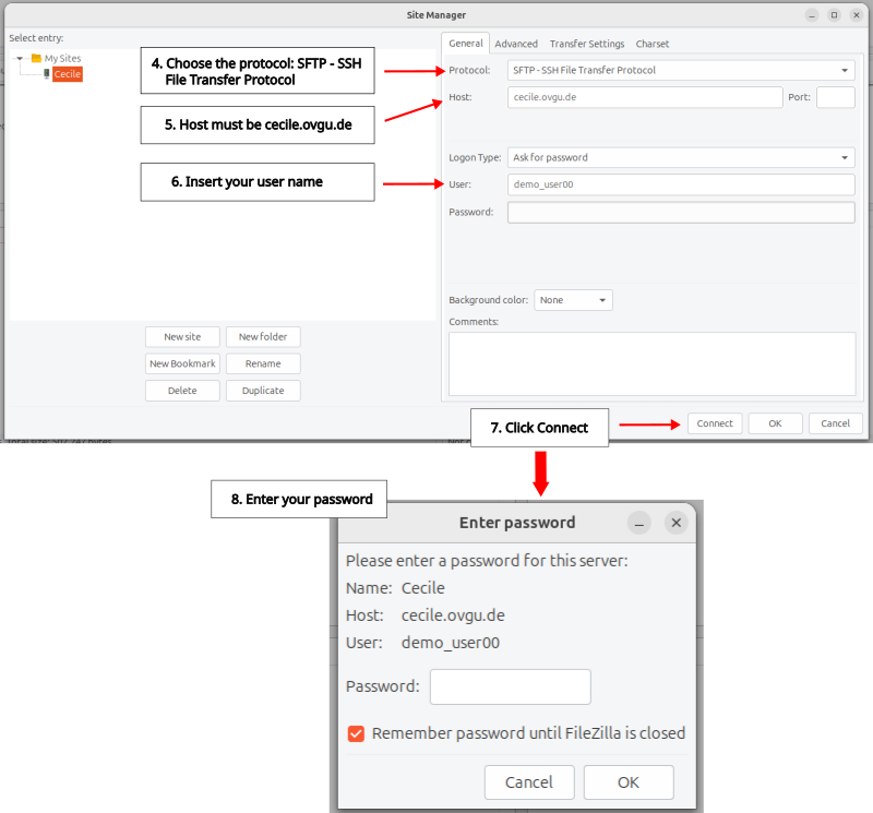 In case you feel more comfortable with a GUI you may use the following SFTP clients: Filezilla, available for all OS, or cyberduck. Please refer to the respective documentation for the installation.